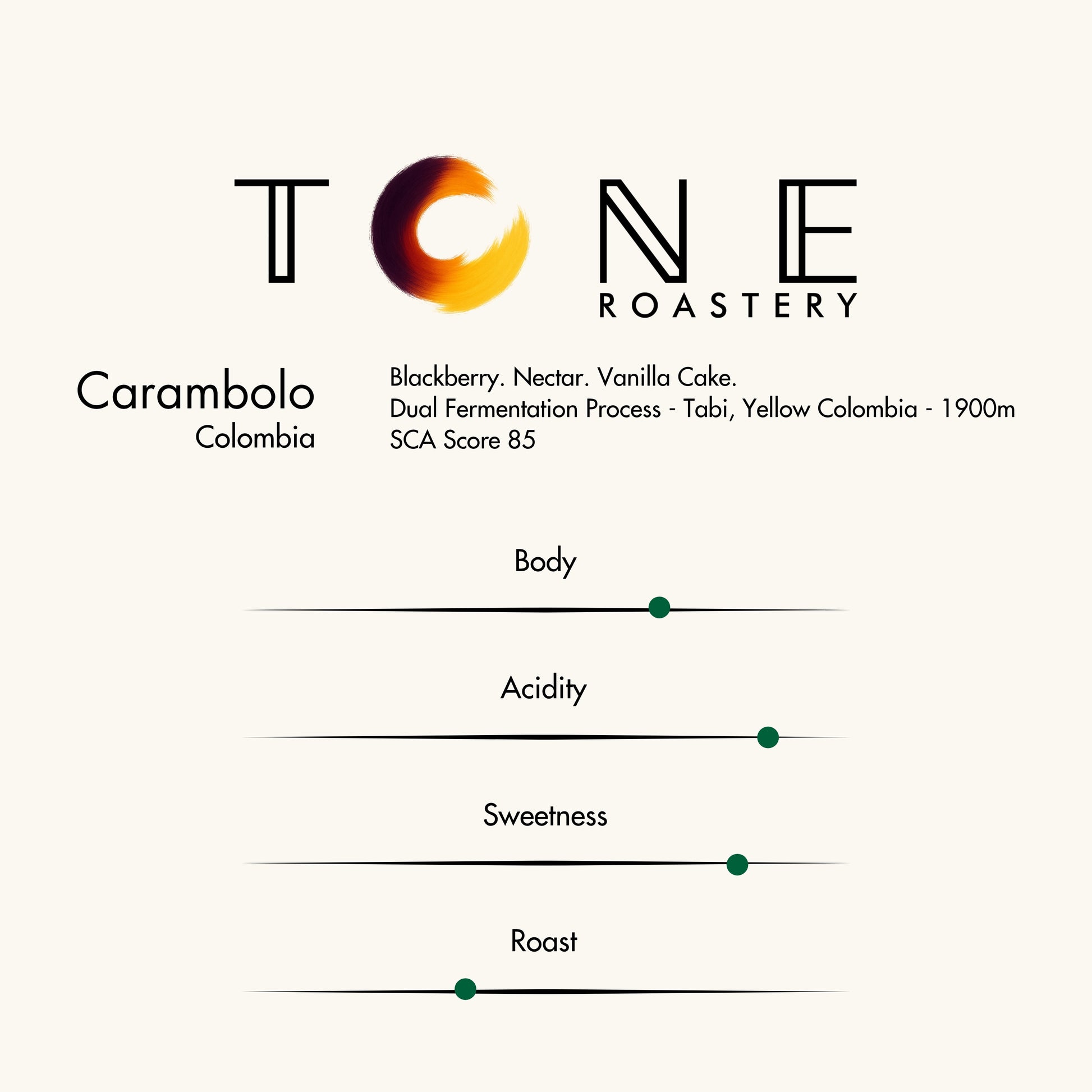Carambolo, Huila’nın yüksek dağlarında gelişen kompleks yapısı, yoğun gövdesi ve berrak aromatik dengesiyle, çift aşamalı fermantasyonun ne kadar zarif sonuçlar yaratabileceğini kanıtlıyor.
