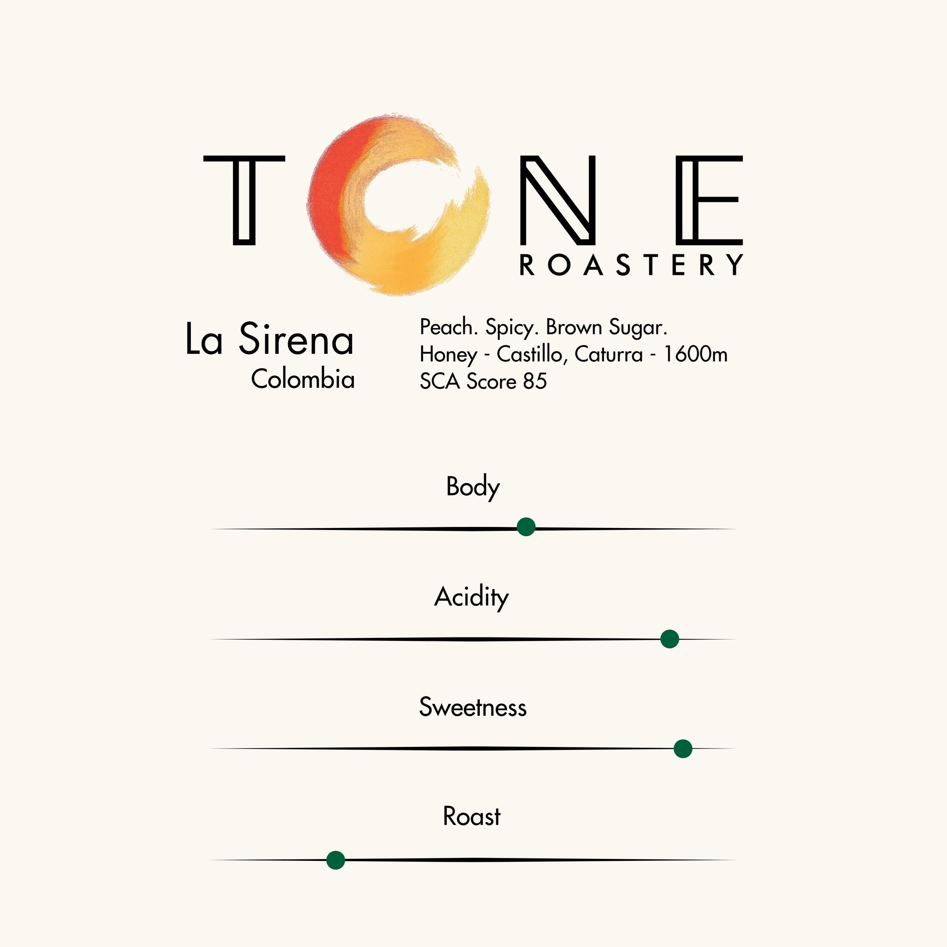 Şeftali, baharatlı tonlar ve esmer şeker dokunuşları ile dengeli, sofistike ve ferahlatıcı bir kahve deneyimi. La Sirena, Kolombiya kahve kültürünün yenilikçi ruhunu her yudumda hissettiriyor.